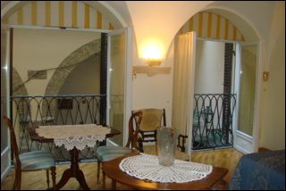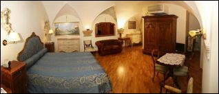 The Bernini Suite is perfect for someone requiring more space or for an extended stay, it's dimensions consisting of 322 square feet or 30 square meters. It has 2 full dressers, an enormous wardrobe, a couch and three chairs for lounging or entertaining guests. There are three full length windows opening up into the courtyard. The bathroom includes a modern fully adjustable shower as well as a bathtub and hair dryer. It sleeps 2-